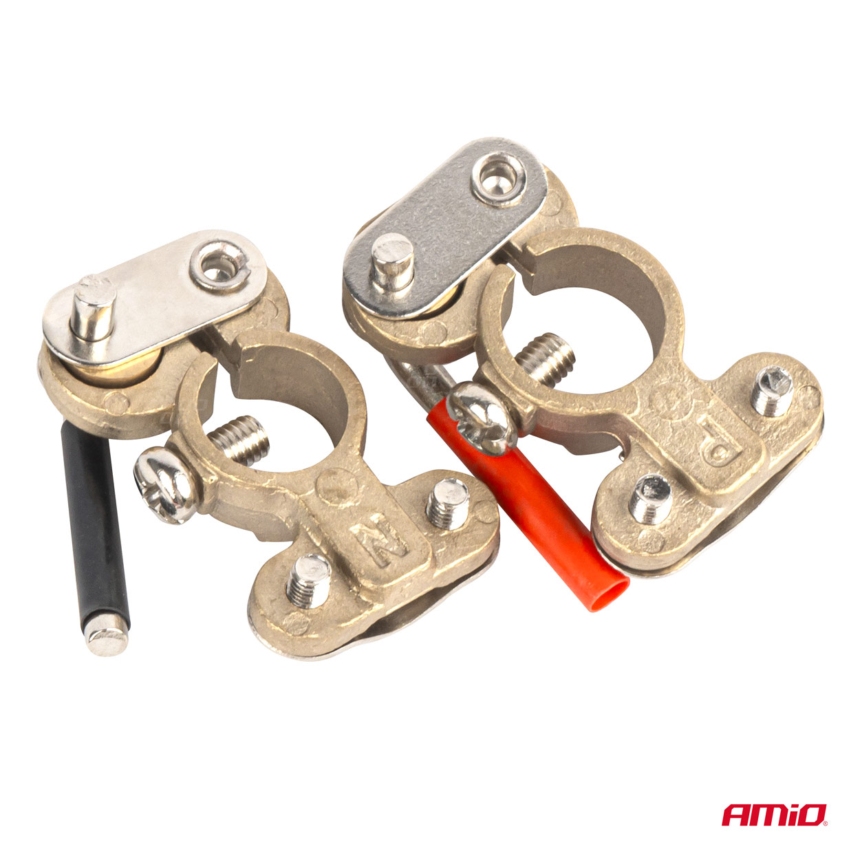- Brass clamps (up to 600A) are designed for all types of 6-12-24V batteries.