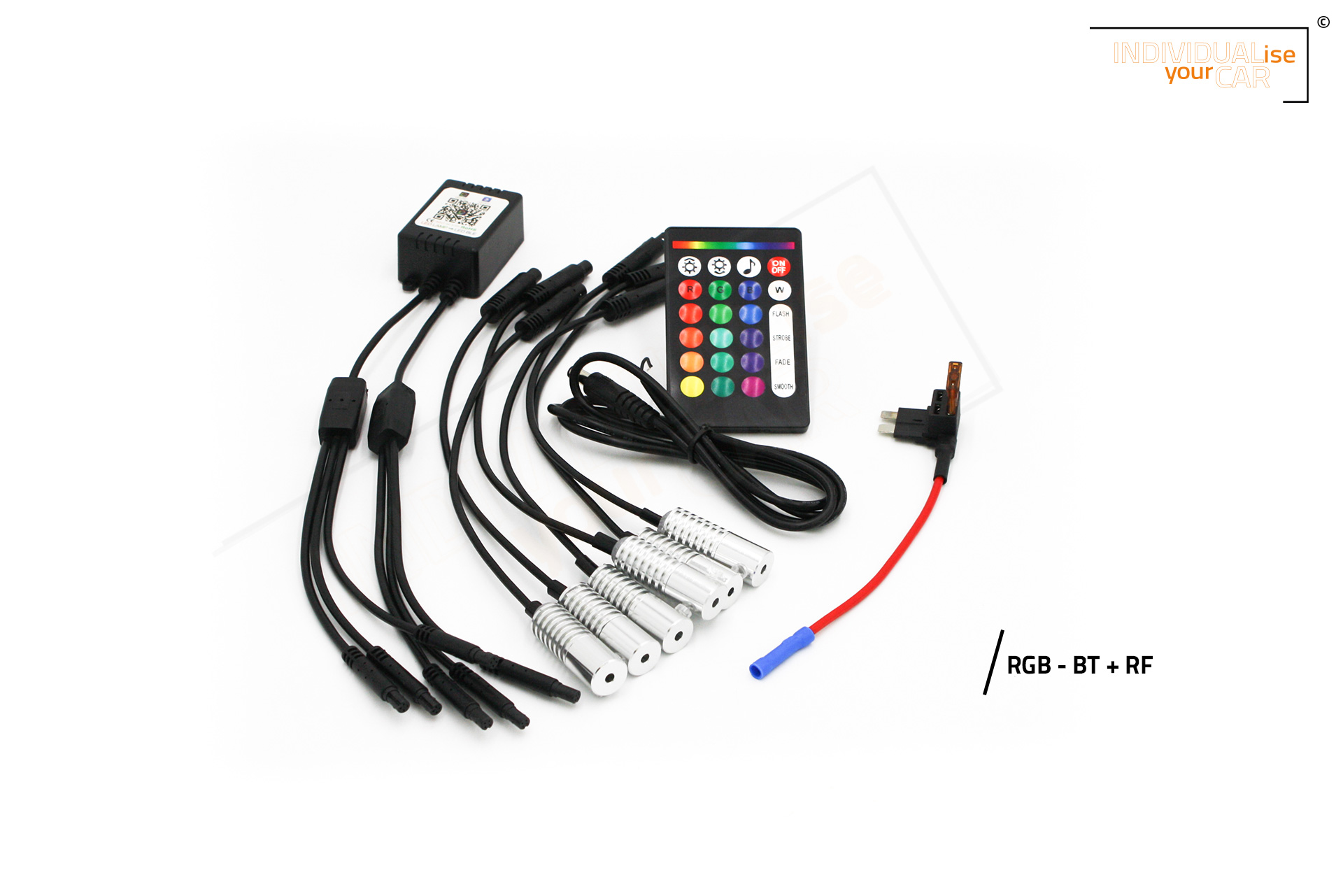 - the length of the wires of the RGB BT+RF central unit to the single light sources is ca. 40cm. You will need extension wires, which you can order here: https://www.mk-led.hr/shop/ambitrim-rgb-led-ambijentalna-rasvjeta-za-unutrasnjost-vozila-dodaci/