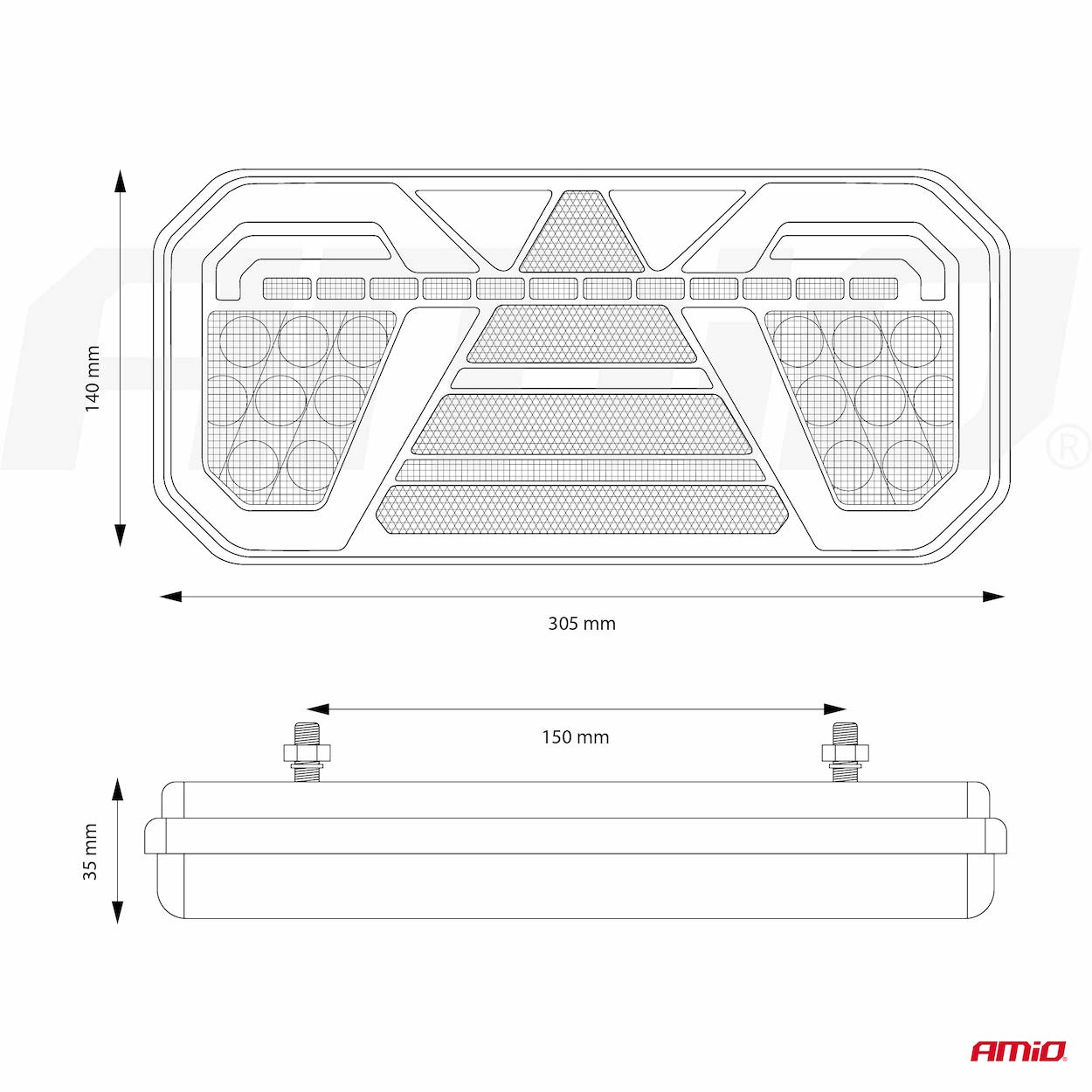 - Functions/lights: position, reverse, stop, turn signal, fog lights