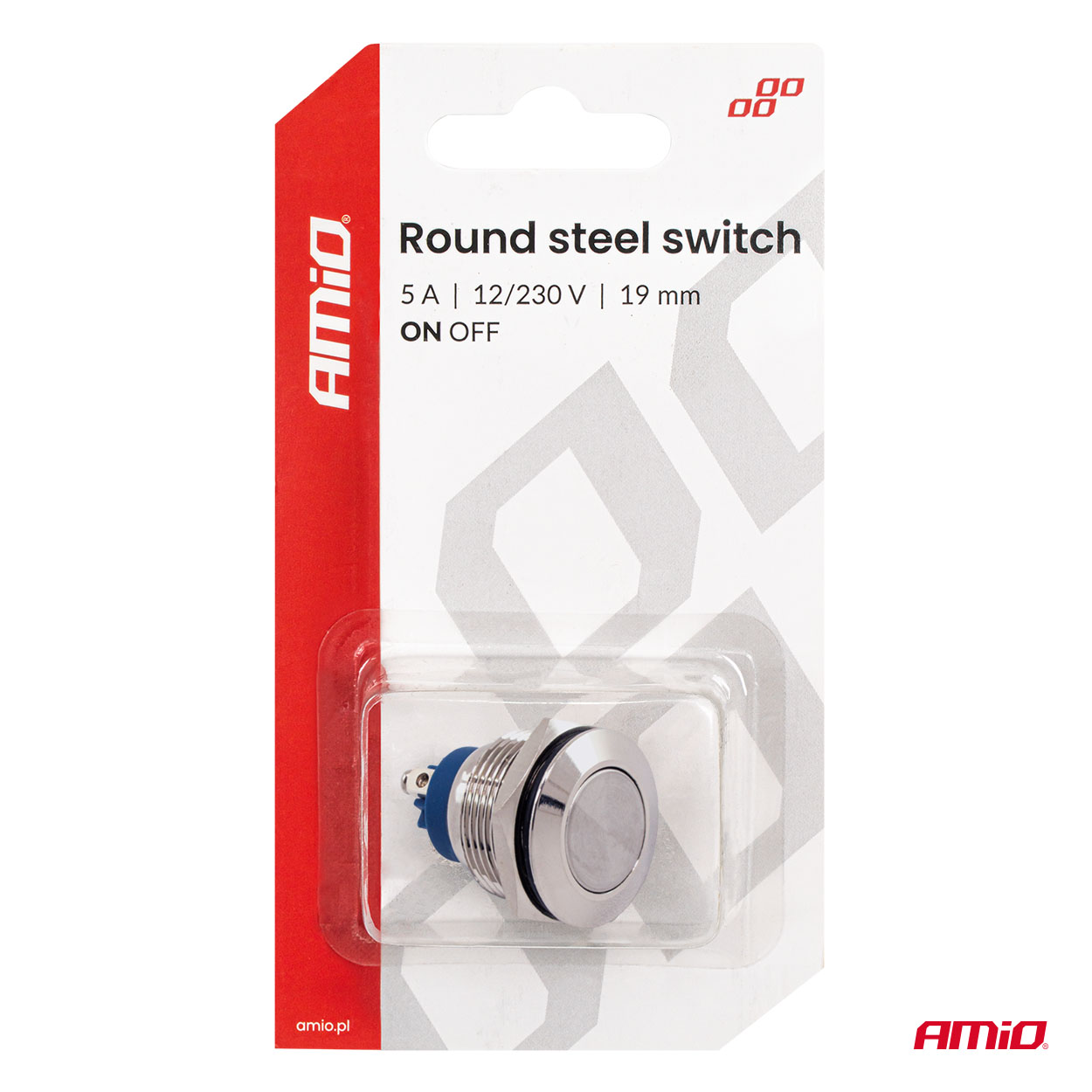 Round steel switch ON/OFF 19 mm 5 A 12/230 V — CE