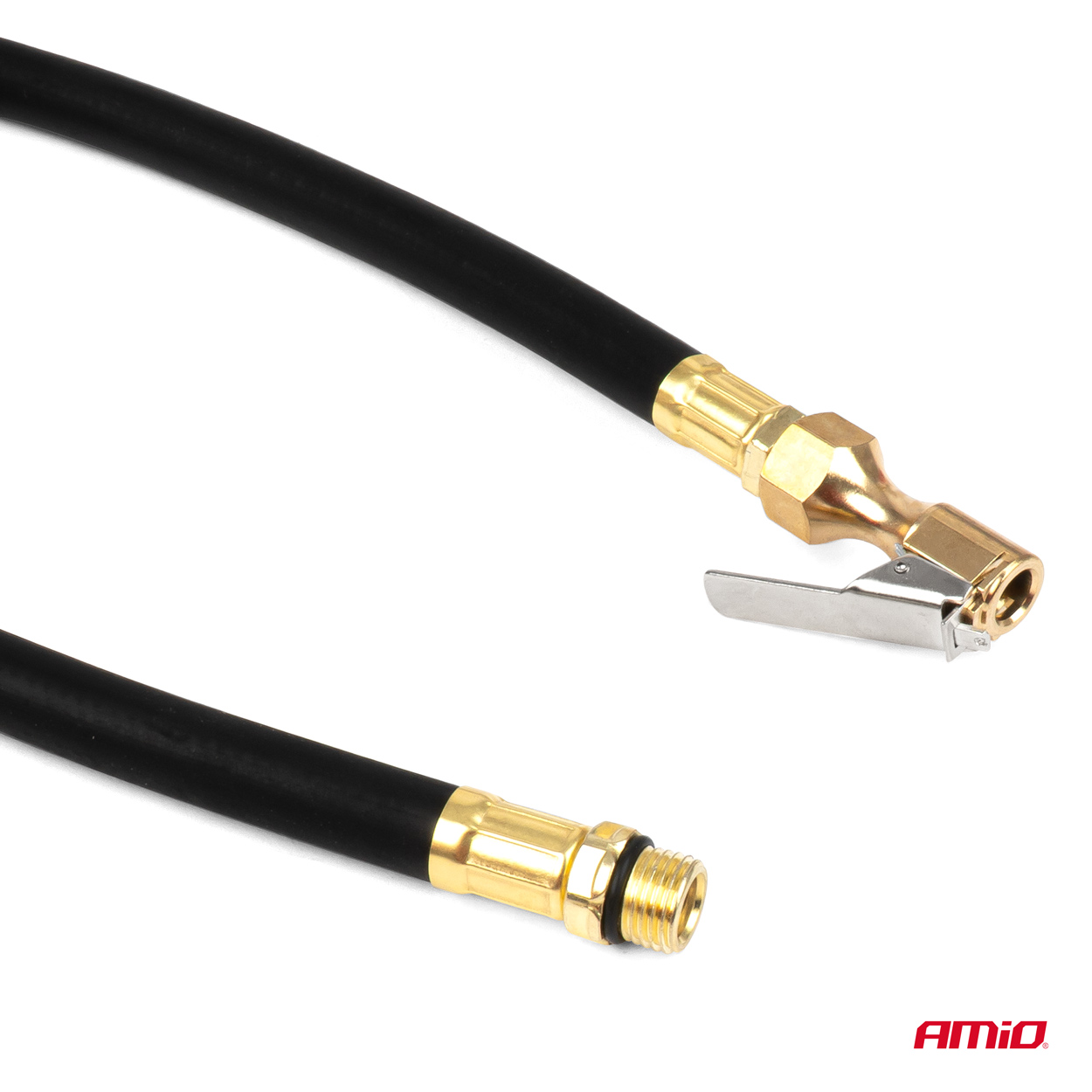 AMIO-04482 digital tire inflation gun enables precise pressure measurement for tires up to 18 bar. It is built for professional garages, workshops, and enthusiasts requiring high accuracy. It features a sturdy build and an integrated pressure-relief valve for fine adjustments.