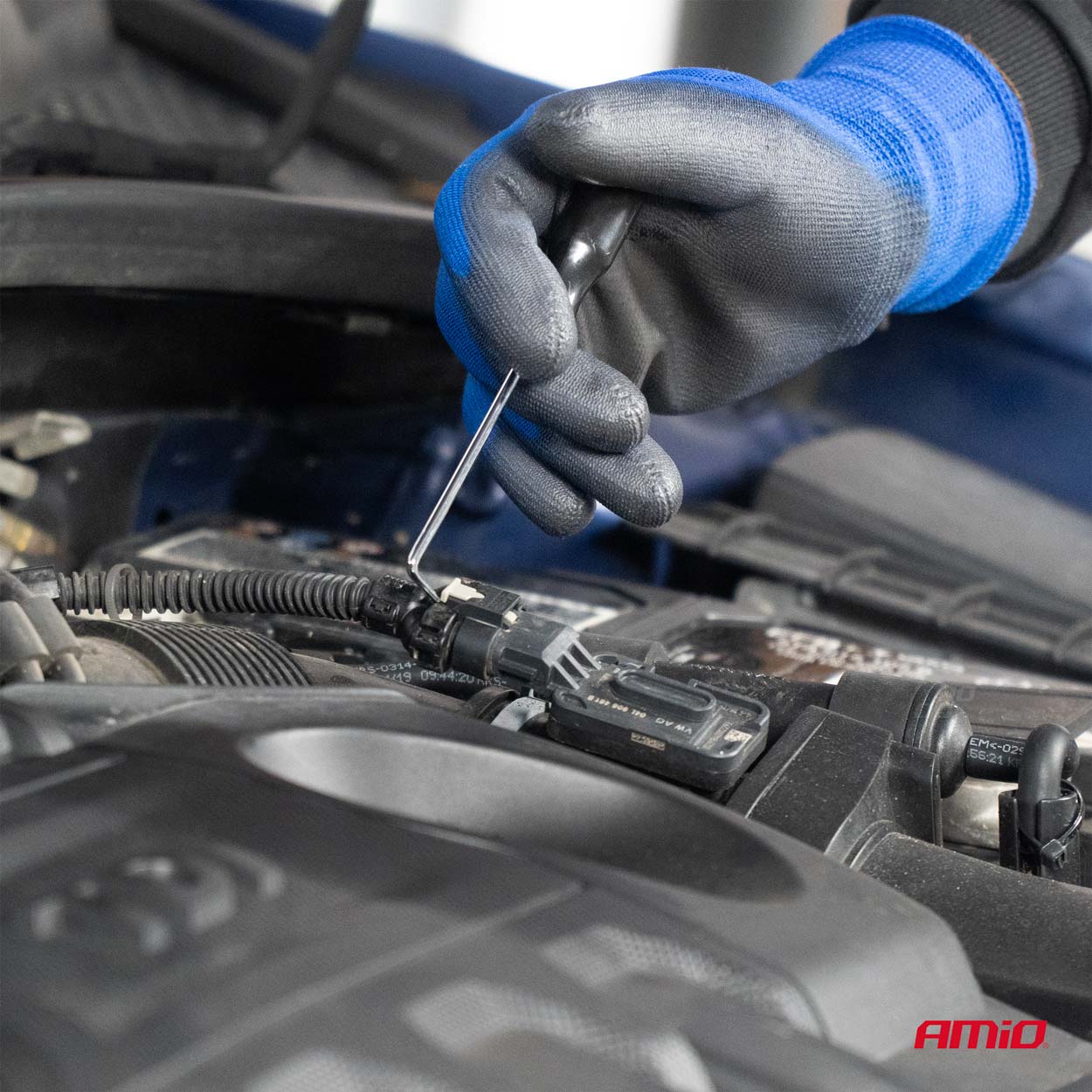 - In the automotive workshop: For removing seals, pulling o-rings or manipulating clips and springs.