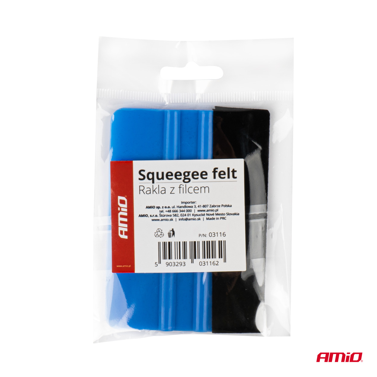The felt-edge squeegee measuring 10 × 7 cm (AMIO-03116) is designed for gentle and precise film installation. The felt edge protects the film from scratches while evenly distributing pressure to expel air bubbles and deliver a smooth surface.