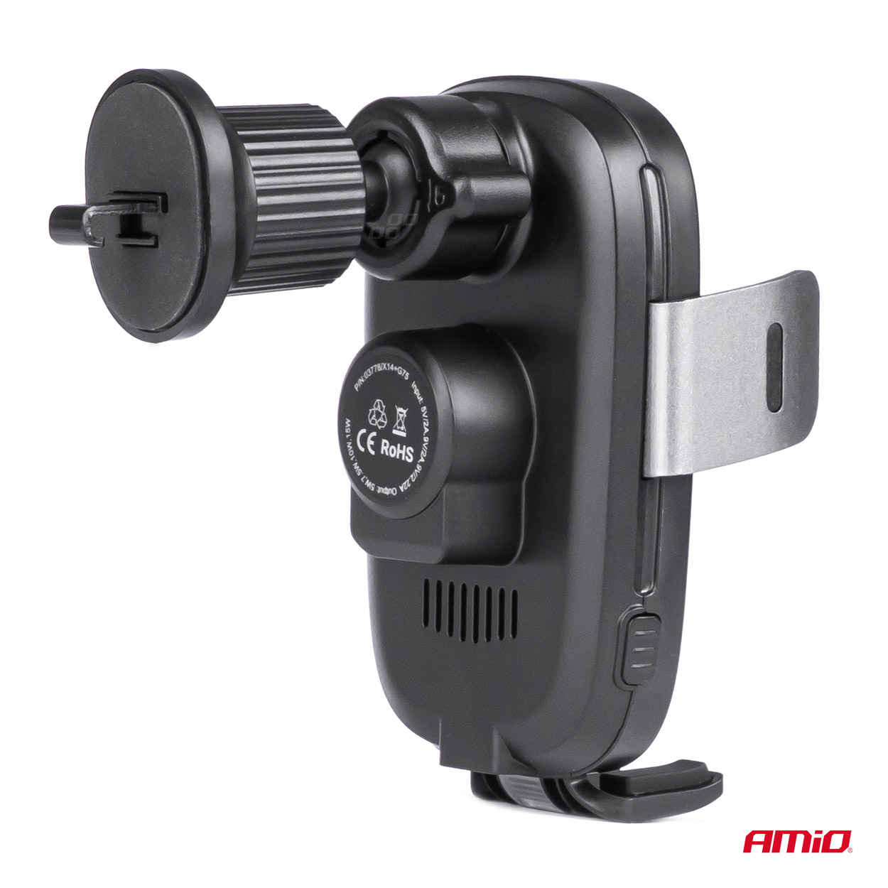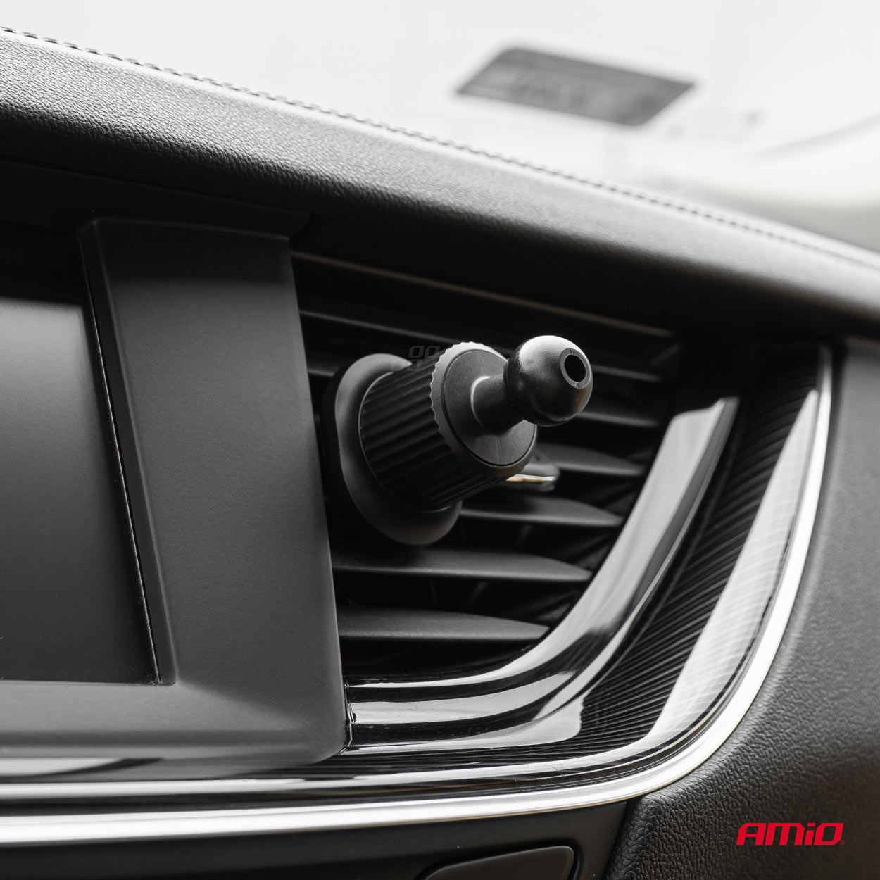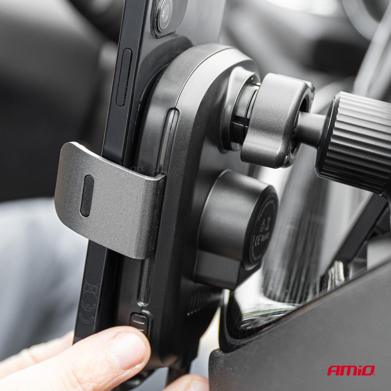 Innovative and elegant holder from AMiO with 15W inductive charger. The holder can be rotated 360 degrees, we can use the phone both vertically and horizontally. The holder, thanks to its design, can be mounted in the windshield grille without any additional screws, tape or glue.