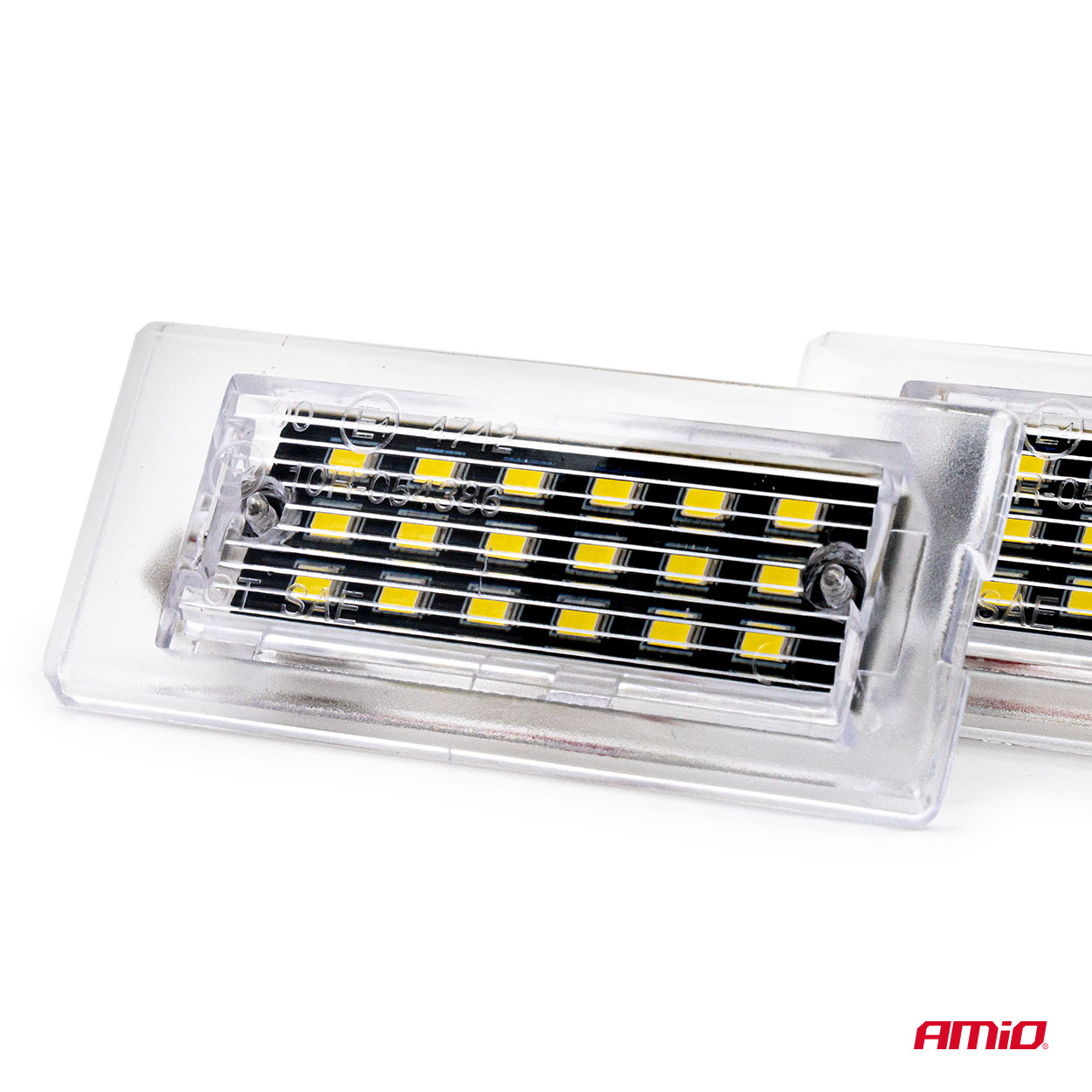The modern CLP07 LED license plate light is a high-quality replacement for OEM factory lamps. Made with LED technology, it ensures reliable operation and aesthetic appearance. Designed for durability and ease of installation. (Source: amio.pl)