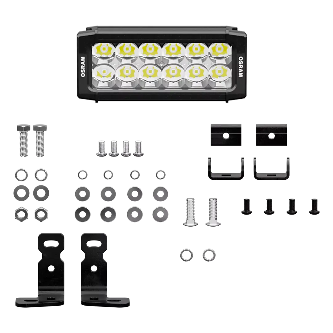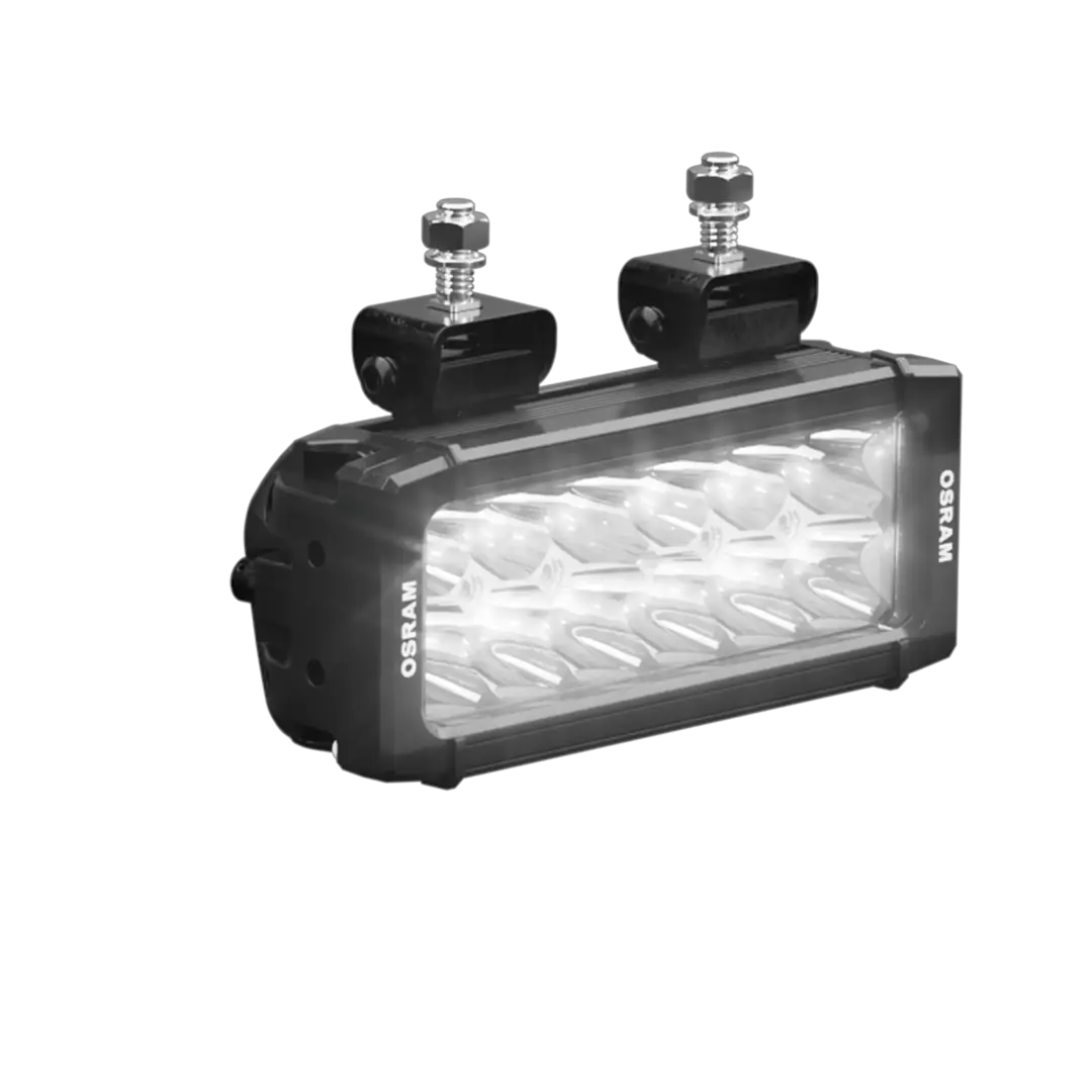 Considerable foresight on dark country roads, forest paths, off the beaten tracks, off-road and on-road- this can be achieved with the OSRAM LEDriving Lightbar VX180-SP DR. With its 12 powerful, high-performance LEDs, the driving light has a range of up to 200 meters and thus offers the driver impressive foresight on-road and off-road. Even in dim light and reduced visibility due to external environmental influences, the driving light with up to 6000 Kelvin can provide conditions similar to daylight. The power package with up to 2100 lumens scores with highest optical efficiency and homogeneous light distribution. The driving light is characterised by its robust double-row design, providing users with impressive illumination. In addition, the lightbar comes with standard brackets for various mounting options: hanging, standing and side. Versatile applicable, it defies numerous environmental influences and, thanks to high-quality materials such as the aluminum housing and the stable polycarbonate lens, it is particularly light and at the same time robust and resistant. The driving light has been tested and validated with the IP-Protection Classes IP6K8 & IP6K9K in our DIN certified environmental simulation laboratory for extreme external influences regarding water, dust, impacts, heat, cold and permanent vibration. Whether on-road or off-road, the LEDriving Lightbar VX180-SP DR is an effective and efficient addition to your vehicle and can be attached to cars, trucks, agricultural machinery, commercial vehicles, construction vehicles, caravans, off-road vehicles and quads1). OSRAM provides a 2-year guarantee2)