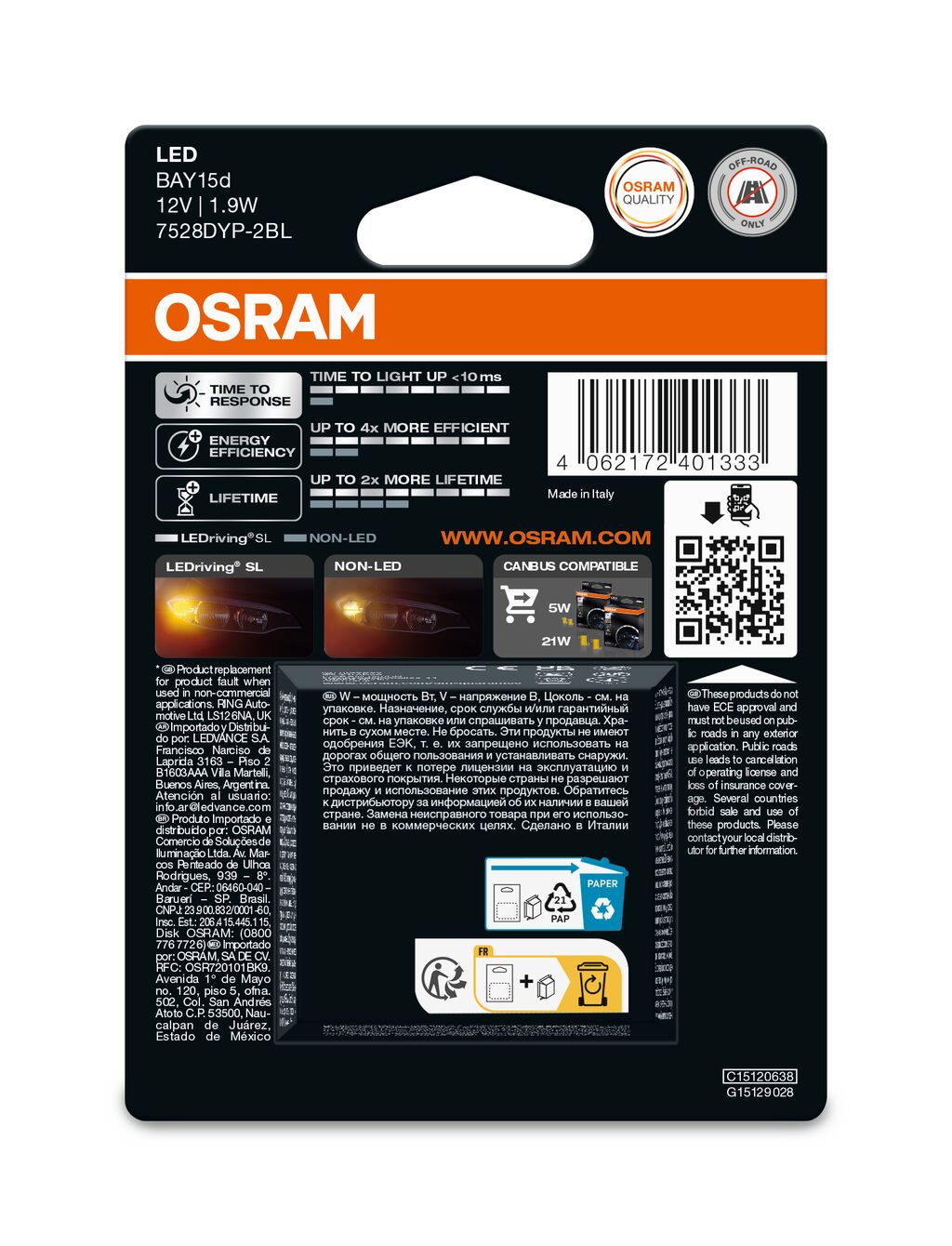 12V Osram LEDriving Premium bulbs:- USAGE for vehicles: daytime running lights, stop lamps