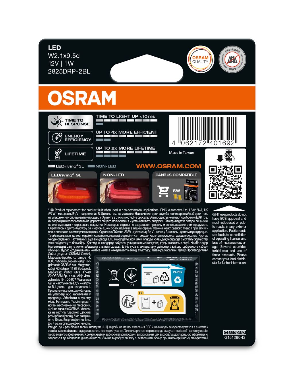Be the first to review “Osram LEDriving SL W5W (T10) LED bulbs”