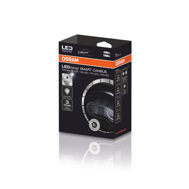 Some vehicles report a fault in the exterior lighting when LED lamps are used. With the OSRAM LEDriving Smart Canbus series, potential error messages in the on-board system are avoided.These error messages can occur when converting to LED lamps, as these have a lower current consumption than, for example, halogen lamps and therefore the vehicle’s existing fault detection mechanism will be activated.Only the combination of OSRAM LED lamps in conjunction with the official OSRAM accessories – LEDriving ADAPTER, LEDriving SMART CANBUS, LEDriving CAPs and LEDriving ERROR CANCELER is approved for the operation of our LED lamps.Details, in particular on the combination of OSRAM accessories and the street-legal1) NIGHT BREAKER LED and TRUCKSTAR LED lamps, can be found on the respective product pages under: NIGHT BREAKER LED Kompatibilitätslisten | Automotive (osram.de)orAutomotive | OSRAM Automotive