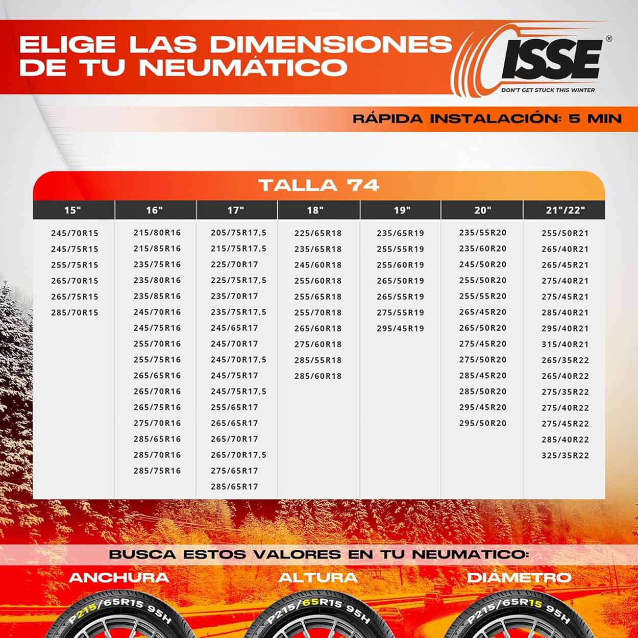 - Compatibility: size 74 fits a wide range of tyres, making them a universal solution for many car models.