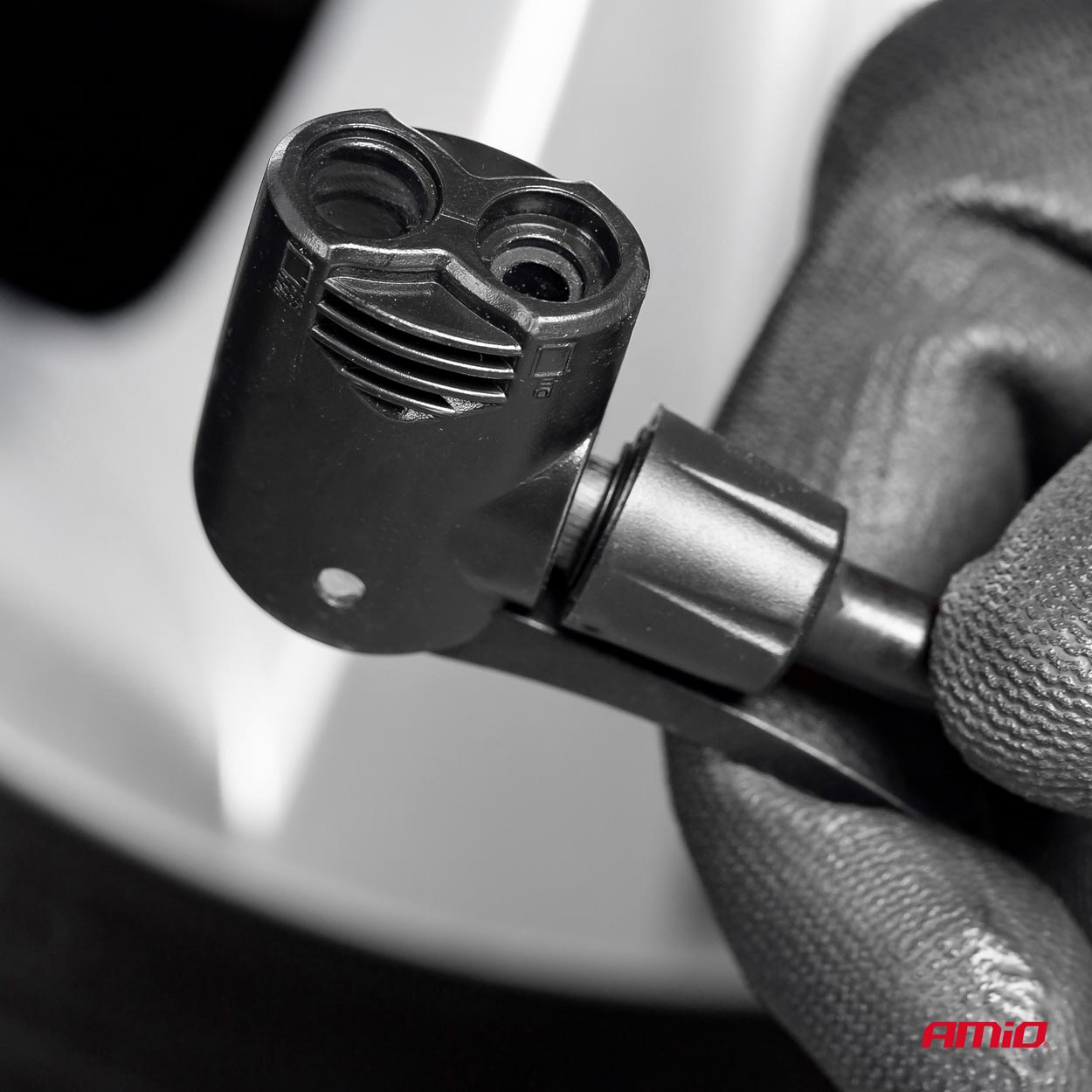 Ima dvostruku univerzalnu glavu za ventile za automobile i bicikle. Osim toga, uključeni su adapter i igla za pumpanje madraca, lopti, igračaka na napuhavanje itd.